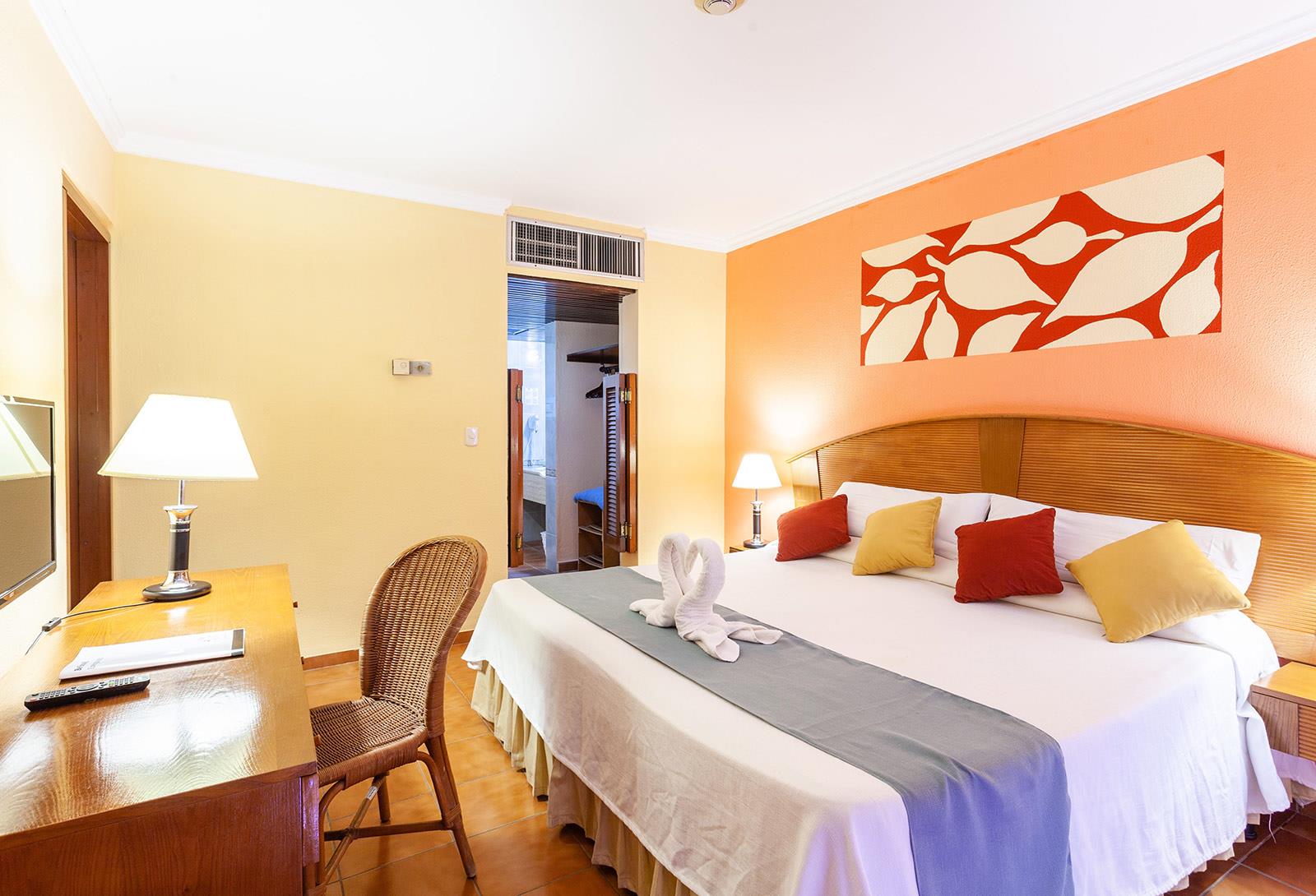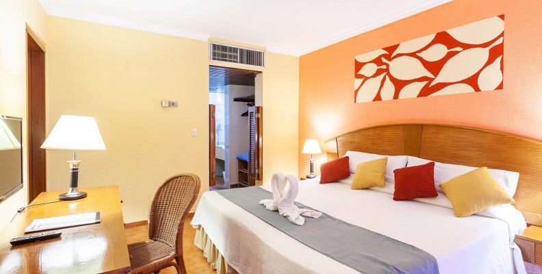 Про номер. Заселили сразу в нормальный номер с видом на бассейн и океан. Сейф бесплатно. Но какая-то странная система… Открывается он карточкой-ключом от номера… Теоретически получается, что любая горничная может его открыть… Мы сначала боялись, что что-нить пропадёт. Но всё было хорошо, и ноутбук, и фотоаппарат со всеми объективами, и деньги с документами остались в целости и сохранности. Только сейф очень маленький, всё перечисленное ели влезло! Хорошо, что ноут у нас в мини варианте. Но от сумак и упаковок всё равно пришлось всё освобождать. Убирают хорошо, полотенца и простыни чистые и не пахнут сыростью (как это было, например в отеле в Гаване). Ну, иногда встречаются пятна, но это мелочи! Если на этом заморачиваться, то надо везде путешествовать со своими простынями :) Единственный минус номера – это его размер. Тесновато немного. Но мы же не в номере сидеть приехали! Так что это не очень критично! Остальное всё было в порядке. Сантехника работала, вода горячая была постоянно, кондиционер, телевизор (1 русский канал НТВ-Америка) и холодильник (1,5 л. воды ставили каждый день бесплатно) работали исправно. В розетки переходника не требуется. Всё вставлялось и заряжалось нормально. Полотенца меняли странно… Иногда через день, иногда каждый день… Мы так и не поняли системы… Из банных принадлежностей только шампунь, мыло и шапочка для душа. Гелей для душа не было. Горничных было 2, менялись через день. Чаевые оставляли почти каждый день по 0,5 или 1 CUC.