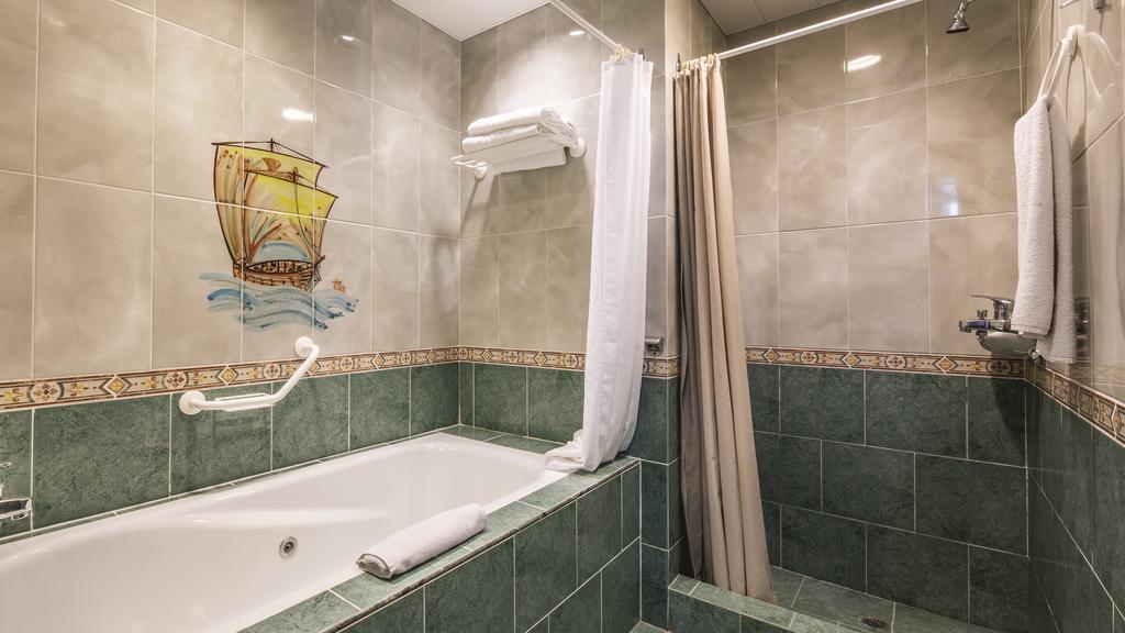 Номер очень маленький и весьма посредственный. Но кондиционер работал, причем очень тихо. Сантехника работала, горячая и холодная вода без перебоев. В ванной был допотопный фен. Был холодильник в котором ждало пиво и газ. вода. Телевизор. Из российских каналов показывает «НТВ Америка». Так как у нас была приставная кровать, то ходить по номеру было практически нельзя. На балкон пройти можно только боком.