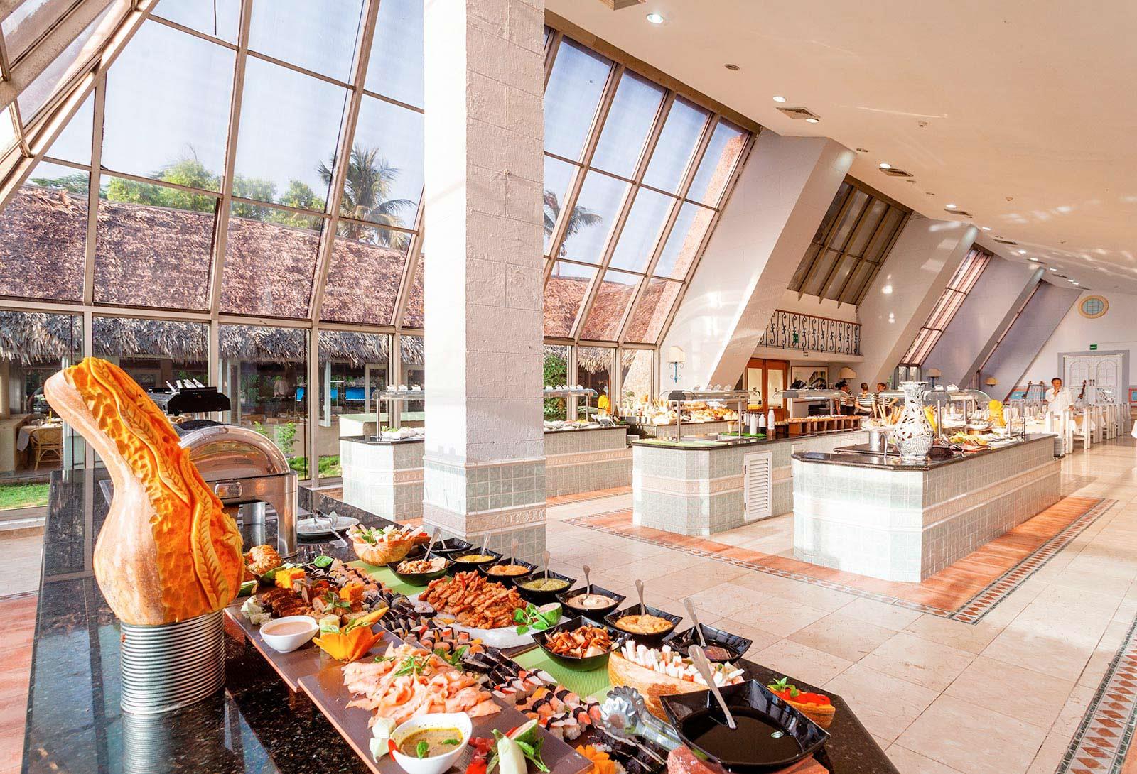 Про еду. Питание замечательное: вполне разнообразно, мясо, курица отличное.. всё при тебе жарится… нежное и сочное… Рыба постоянно, крабы были. Креветки огромные в белом вине жарились при тебе. Раза 4 их давали. И очередей особо не наблюдалось за этим. Бекон к завтраку, правда, на мой взгляд, был несколько пересушен. Но всё равно вкусно! Мороженное было всегда на завтрак, обед и ужин. Довольно вкусное. Выпечка мне не очень понравилась. В Египте-Турции намного вкуснее. Ну это на мой взгляд :) Отдельная песня – это фрукты!!!! Ананасы – это просто восторг души! Такие вкусные, сочные и сладкие!!! Можно сказать, что жила там практически на одних ананасах!!! Ещё постоянно были апельсины, грейпфруты двух сортов (жёлтые и красные), гуава(гораздо крупнее и спелее, чем в Египте) безумно вкусная, бананы. Пару-тройку раз были зелёные (по цвету, а не потому что незрелые) дыни, и арбузы… Я не любитель этих видов, поэтому о качестве ничего сказать не могу. Отдельным словом про папайю. У них она называется фрутобомба, потому что словом папайя у них называют женские половые органы (папаина)… Так нам сказал гид на экскурсии. Поэтому, вслух можно говорить только фрутобомба :). Была она постоянно и очень спелая. Но на мой вкус это такая редкостная гадость, что есть её нет никакой возможности… Возможно, это из-за её неприятного запаха… какой-то прокислой рвотной массы… Сначала думала, что возможно это из-за жары прокисло… Не может же быть, что то, что хвалят миллионы людей, оказалось гадостью… Но потом взяла на пробу при мне очищенный и нарезанный спелый плод… Запах тот же… На вкус преснятина непонятная… В общем, с папайей у меня не сложилось :) Но, может, я просто не понимаю :) Есть мы ходили всегда в основной ресторан. Есть ещё 2 ресторана по предварительной записи Эль Ранчо (на втором этаже) и Калибри (на самом деле это бар возле бассейна :), просто на время ужина там сидят только те, кто предварительно записался и ужинают, а для всех остальных постояльцев он закрывается. Но в 21.00 это снова простой бар, доступный всем). При заселении выдают два талончика на запись в эти рестораны. Но мы ни разу не ходили, потому что нас всё устраивало в основном ресторане. Посуда иногда попадалась грязноватая, но мы не заморачивались, просто брали другую тарелку. Иногда приходилось подождать, пока приборы поставят и салфетки дадут. Но напитки приносили очень быстро, и ходили потом подливали. Соки оставляли желать лучшего… Что-то типа Юпи-Зуко… Но возле бассейна был витаминный бар, где делались фреши с 11 до 13 и с 15 до 17. А так же в Пиано-баре в коктейли лили апельсиновый фреш. Ну и наливали его отдельно желающим :) Все фреши, а также импортные алкогольные напитки бесплатны. Ром в коктейли льют немилосердно :), не так как в России! Единственный коктейль, который я не попробовала в отеле – это Саоко (Saoco). Это кокос со вскрытой верхушкой и вставленная в него трубочка. Включён он не был, но иногда его в баре делали за чаевые. Честно говоря, не знаю, сколько это стоило. Но на экскурсии я попробовала. За 2 кука просто кокосовое молоко, а за 3 кука отхлёбываешь чуть-чуть и тебе туда рома доливают. Мне не понравилось… Ни с ромом ни без него… Но это дело вкуса! Лангустов в отеле тоже не ели. На экскурсии на остров Кайо-Ларго на яхте они стоят по 10 Куков (в отеле 12). Там мы их и попробовали. На вид – просто очень больш