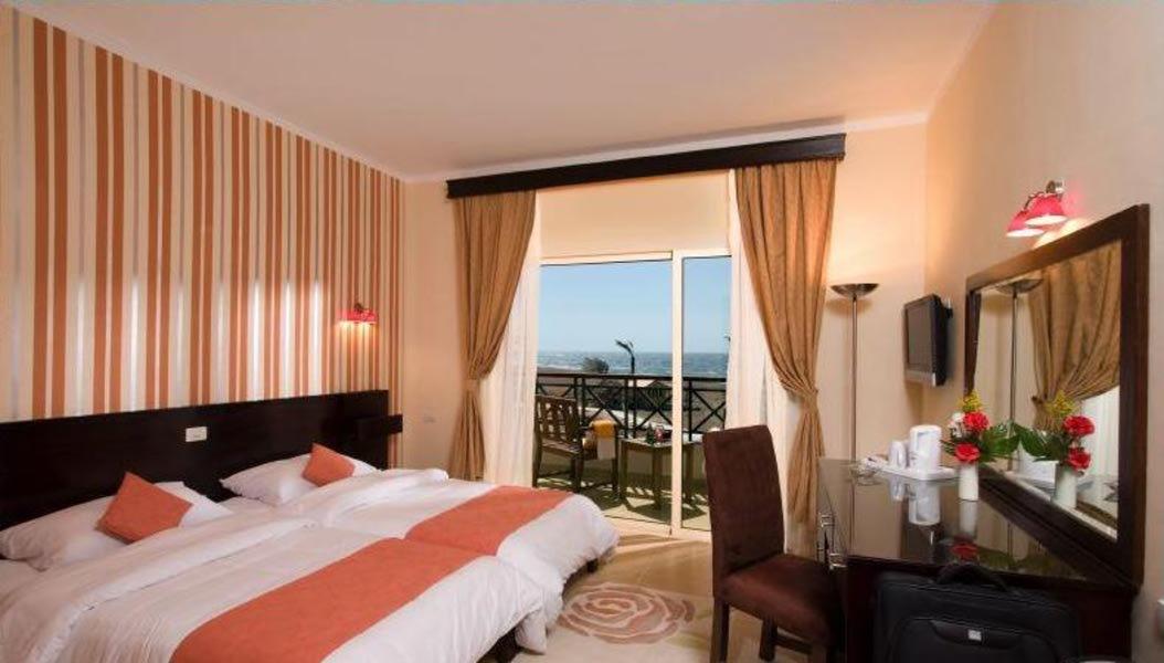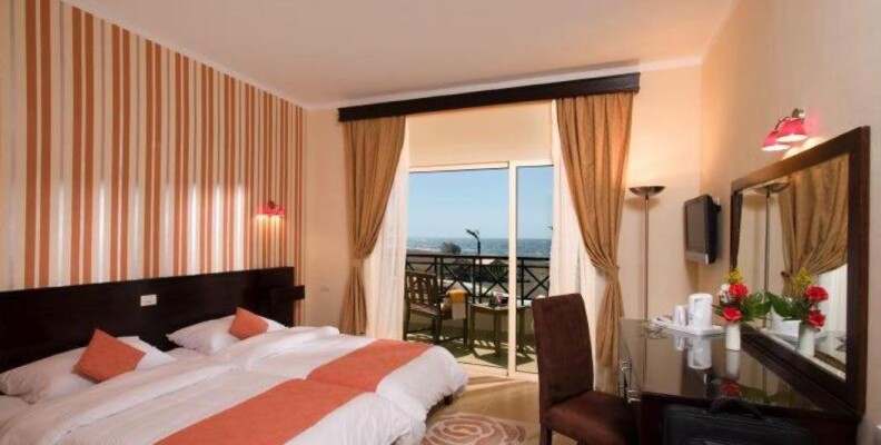 Теперь о самом отеле.Поселили сначала в номер,где небыло горячей воды,как оказалось и с видом на помойку.Но на утро я подошёл к гиду Тез тур(мне повезло конечно с тур-оператором) Нине,которая в момент всё решила:мне поменяли номер на один из лучших с видом на море и бассейн и вечером к моему удивлению принесли в номер фруктовую корзину в качестве извинений.Было очень приятно и вкусно.Номер достаточно хороший,просторная комната,ванная.Единственное,что мебель конечно истрёпанная,краны страшные и вода из кранов течёт солёная,зато горячая и холодная.Но и это меня не смутило.Ведь я приехал в пустыню,где вода на вес золота.Постель не новая конечно,полотенца старые.В номере убирались каждый день и меняли полотенца.