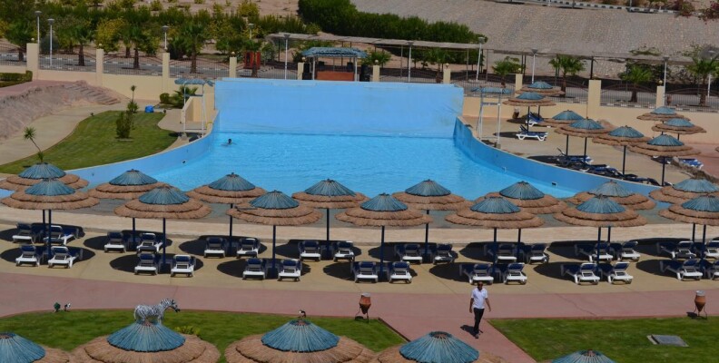 Отдыхали семьями с детьми с 17.08 по 30.08 2014. Если честно первый раз пишу отзыв об отеле, так как просто в шоке. В аэропорту виза 27$. Трансфер нормальный, без проблем. Дали номер в аквазоне, где еще полным ходом идет ремонт. Жить невозможно, но за 20$ номер поменяли опять таки в аква зоне, но уже все цивильно. 1-2$ сделают чудо и уборка номера готова!!! Что касается пляжа, то сказка, море чистое, всегда есть места. Вот полотенца на пляже это жуть в 5 звездах. Аквапарк - правда сказка и покушать только сдесь и хочется. Ну в целом я придраться к пляжу, номеру и територии не могу.Хочу отдельно сказать за питание и туристов!!! В этом отеле половина отдыхающих арабов. Для отеля это вообще не правильно. Отдельно скажу про питание! Это просто ужас, скорее кошмар. Я знаю, что в Египте питание не блещет, но ребята антисанитария полная, но больше всего бесит то, чтоб утром позавтракать нужно выстоять мин 30, чтоб получить тарелку, потом ложку или вилку. Первые 3 дня были как в кошмаре. После драк с персоналом(выдержать это было невозможно)и бесконечных жалоб наконец то стали убирать. Стали хоть немного готовить, но проблема с тарелками и приборами не исчезла. В отеле нигде нет пяти звезд, они вообще нигде не нарисованы. За все 13 дней из фруктов были 2 раза вечером дыня, 2 раза зеленые(есть невозможно) бананы и 1 раз гнилой гранат.Деткам мы объяснить не могли почему нет фруктов. Нам говорили не сезон. Проблема решалась за 5-7$ на пляже покупали арбуз(договаривались с местными),при курсе гривни 14, золотой арбуз и путевке в 30 000 грн. Ребята больше писать ничего не буду. Просто одним словом это двойка и ГАЛИМАЯ ЖЛОБЯТНЯ(извините за лексикон)!!!!