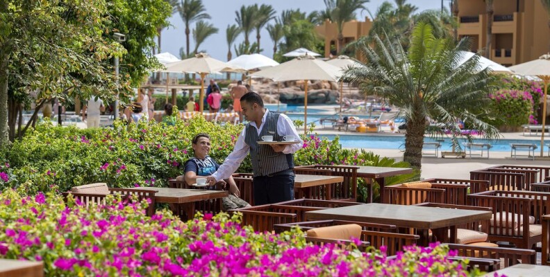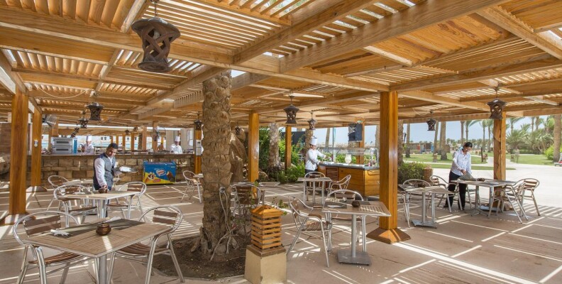 так мы уже перед самым отьездом думаем дай напомним , так мало того он еще нахамил нам что мы типа ему сами не позвонили не напомнили и не разыскали его чтоб узнать цену ,мы в шоке были ?! хотелось ему сразу нарезать и подтянуть за базар!!! но потом нам сказали со стороны что так как мы не брали экскурсии мы для него не интересны .во всех социальных сетях есть отличный человек Mohamed amon заказали у него по телефону все экскурсии нас удивил своим русским языком и знанием истории и все нюансы во всем сказал рекомендуем его всем русским туристам молодец!! Территория отеля чистая, возле корпусов много кустарников, цветов, но в основном вся территория под открытым солнцем, изредка растущие пальмы не создают тень, но это Африка и буйные сады на территории пустыни не растут. Отдельно хочу отметить бассейны, их на территории отелей много, они очень красивые, и самое главное они не воняют хлоркой и чистые. Вокруг бассейнов много удобных лежаков и зонтиков. На пляже тоже очень уютно. И самое главное, то чем пугают туристов - длинный пирс и отливы. За семь дней отливы были 3 раза, вода уходит от берега на 100м, дважды это длилось 3 часа, единожды полдня. В обычном режиме глубина воды на участке отлива 15-30 см, так что ее уход не большая потеря. Плавать можно только с пирса, и отлив там совершенно не чувствуется. На пирсе есть зонтики и лежаки, и мы загорали в основном там, потому что на пляже было немного душно. Питание считаю для Египта нормальным. Ежедневно и в обед и на ужин была говядина, курица, рыба одновременно. Пару раз нарезали индейку фаршированную, раза 3 или 4 была печень на ужин в глиняных горшках. Это в самом ресторане. На улице в то же время вечерами на гриле жарили котлеты типа кебаб, либо рыбу, или кур, также были медальоны из говядины, шаурма 2 или 3 раза.(Я все перечисляю подробно, так как в некоторых отзывах пишут, что мяса не было; для нас было этого достаточно).
