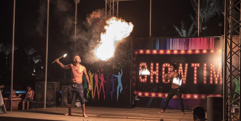 На пляже тоже готовят(картошку фри, салаты, сосиски, пиццу так что похудеть не получится))) Днем на территории отеля проходит анимация, аквааэробика, танец живота, латина,баскетбол, аэробика,дартс, вечерами шоу-программы, приезжали артисты, были национальные танцы с юбками и танцы живота.