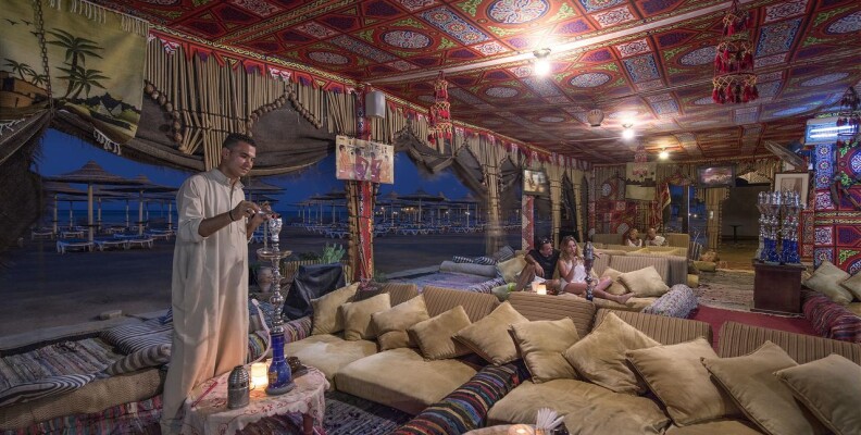 2) Питание. 2 бесплатных ресторан Aqua Marine (Garden) и в Stella Makadi Beach: Завтрак - выбор такой: картофель отварной, слегка обжаренный, сосиски, омлет с горой лука/помидор, глазунья или вареное яйцо, блины, кукурузные хлопья, плюшки, выпечка и т.д. Обед - суп из вермишели, уха и т.д, рис, рожки, картофельное пюре или фри, овощное рагу как гарнир, мясо/курица/рыба. Фрукты - дыня, яблоки, гранат, финики и виноград, иногда гуава, арбуз, груша, инжир и т.д. Море тортов и пирожных. Напитки: чай, кофе, кола, фанта, спрайт, спиртное и ещё нектары цитрусовые. Салаты, предпочитал свежие помидоры с огурцами без соусов. Ну ужин не очень отличался от обеда люля-кебаб или ещё какой мясо, рыба, один раз дали крабов. Бар-ресторан на пляже с 13.00 до 17.00: картофель фри, сосиски, шаурма, пицца, напитки, алкоголь. Питание стандартное для Египта, все съедобно, не острое, голодными не останетесь. Сладостей в виде пирожных было множество, этого не отнять. Рестораны a la carte ливанский, индийский, итальянский можно посетить все один раз за заест по предварительной записи.