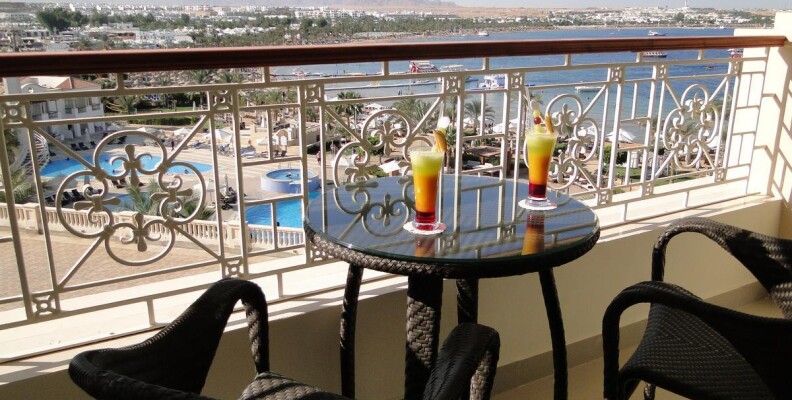 Отдыхали на НГ, в этом отеле второй раз, до этого два года назад. Не разочаровал, как и в прошлый раз, за номер заплатили энную сумму, дали делюкс на пятом этаже с шикарным видом на бухту. Были довольны очень, номер большой, все новое, вобщем отлично. Еда по началу была хорошая, там повар поменялся, еда стала не перченая, без местных приправ, более близкая нам))))) и ее было много, но с 27 числа начался массовый заезд туристов и в том числе и арабов, как то с едой стало похуже, но мы не привередливые, расстраиваться не стали конечно же)))), зато на сам НГ египтяне конечно постарались, накрыли перед корпусом столы, натянули шатер, еды было столько всякой разной, что мы обалдели, и баран на вертеле, куры гриль, и рыба и еще что то, салаты, закуски, канапешки всЯкие и огромный угол с фруктами и еще так прикольно креветки на конусе высоком , котопый весь был утыкан креветками державшимися на зубочистках))))) как наш народ прыгал на самый верх за этими креветками это тема отдельная))))) видимо просто эти люди креветок никогда не ели))))... С алкоголем была беда, с собой нельзя, на столах за заплаченные 100$ с носа ничего не было, только их обычный бар, а если покупать у них то шампанское по 2500 руб бутылка была, про крепкий даже срашивать не стала. Но мы особо ничего не поели там, тк народ запустили в ресторан, выждали какое то время и разрешили идти есть и все ломанулись, в очередях стоять было лень, что то положили, съели, попытались пронести свой алкоголь нас выгнали, в 12.00 мы ушли в номер и шампанское открывали там, нам включили канал с поздравлением Путина и потом вернулись назад в ресторан, посидели пол часа и пошли в номер, дальше как то скучно.... А в остальном все хорошо, Наама бей рядом, местные ресторанчики, ночные тусовки, мы пели в караоке, кушали рыбные деликатесы, просто гуляли, персонал отеля вежливый, мы со всеми дружили, лежаки неудобные коричневые, да, мы брали один синий, один коричневый, нам мальчик у бассейна занимал каждый день одно и тоже место, давали мы ему каждый день по 5 фунтов. Один раз тезтур забыл нас на экскурсию на квадриках, мы позвонили гиду, он примчался, за нами приехал другой автобус, отвез и все дорогу по пустыне туда, мы ехали втроем с нашим гидом, а не в группе из 15 человек, нам дали погонять, было супер, обратно все вместе уже конечно. Вобщем мы довольны, место удачное, отель достойный, мелковато море конечно, но нам как то нормально, там можно за буйки сплавать, ничего страшного, а вот маленьким детишкам там просто супер)))