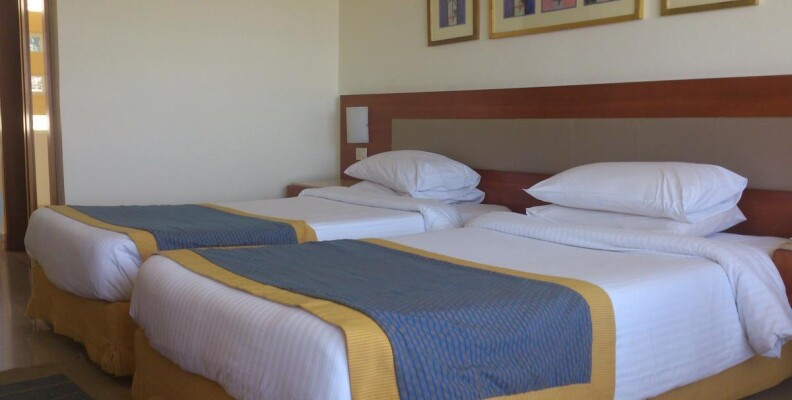 Старенький уже отель, номера маленькие, балконы только на 5 этаже, душевые кабинки не закрываются нигде, после мытья море на полу. Чайников в номерах нет, пришлось самим покупать, много арабов, которые орут по утрам хлеще русских. Еда очень хорошая, правда маловато фруктов. С лежаками проблема, русские туристы, занимают полотенцами лежаки, на которых можно лежать, и так до вечера, остаются только те, где можно загорать только лицом. Вывод, добавьте нормальных лежаков или убирайте эти полотенца, чтобы руссо-туристо побегало и поискало их.
