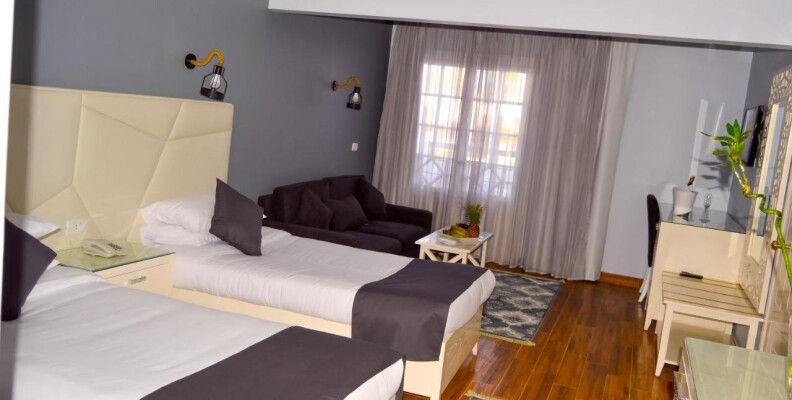 Прилетели в 5 утра сразу сказали если заселяетесь20$. Так как у нас маленький ребёнок естественно согласились. Номера стандартные в египетском))) стиле. Кровати дали отдельные пришлось сдвигать:-) .в номере холодища. Двери плохо закрываются. Питание в отеле отвратительное. Ни мяса,ни курицы одна рыба и та не всегда свежая. Скудные салаты и просто нарезанные овощи каждый день. Единственное перед приездом арабов начали шуршать:-) Вода в отеле платная!!!!2$ 1,5 литра. Неберите :-) если немного отойти от отеля вправо будет маркет с водой 5литров по этой цене.и клубника по 1$)))) мелочь но зимой было приятно:-) ни развлечений ни дискотек на территории отеля нет. Отель полон пенсионеров:-) бедные 3 аниматора стараются как могут:-) . в баре на ресепшен ужасный бармен который обслуживает иностранцев и забивает на русских. Единственным позитивным моментом был ДЖОВАННИ парень из PABA :-) Мы не первый раз ездили в Египет,но этот отельиспортил все представление. Особенно когда мы продлили номер за 30$ и с нас срезали браслеты сказали - все :-) :-) :-) бесплатно только солнце:-) :-) :-)