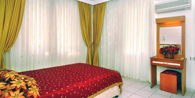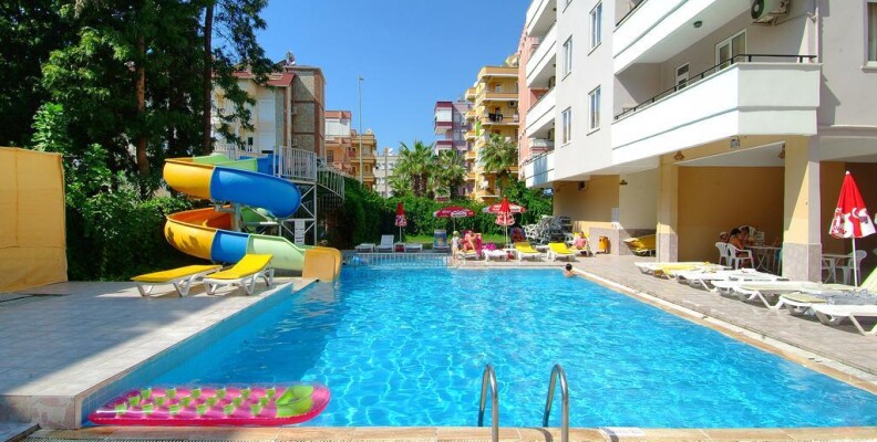 Начну с заселения.Приехали мы в 10.00.Нам сразу же заполнили карту гостя и отправили на завтрак.Если заселяемый час считается 14.00,то нас заселили в 12.00 это был большой плюс,т.к. наш вылет задержали на 12 часов,все просто хотели в душ и спать.Поселили нас в корпус А,на первый этаж номер 2002,с террасой.Во дворе перед террасой растут бананы.Стандартный,телевизор,кондишн,двухспалка и дополнительная полноценная кровать.Номер в принципе не плохой,беллбой отнес наши вещи,дали 2 доллара,попросил еще 3,муж дал еще 2,остался недоволен...После того как приняли душ и решили бежать на море,тут и начались сюрпризы...Наш номер не закрывался ключом!!!Нашли того мальчика,кому денежку давали-"завтраками" кормил часа 2.Муж пошел на ресепшен и оттуда прислали мастера,он все сделал за 5 минут...Уборка в номерах каждый день.Белье меняли раза 3 за 7 дней.Расположение отеля просто чудесное,до моря прогулочным шагом минут 5,не больше,чудесная набережная...Песочек просто идеальный.Как в сказках.По турецким легендам его завез Марк Антоний с Египта,что бы Клеопатра не скучала по своей родине. Одно убивет-горы окурков на пляже.Ну будь ты человеком-сложи свои бычки в мешочек или бумажку и выкинь!Урны каждые 50 м.На пляже умиляют бабушки лет 65-70 топлесс.Завидую их раскованности!Ходят зазывалы-предлагают экскурсии на яхтах.Говорят,что на этом пляже волны всегда есть.Мы после завтрака всегда шли на пляж до обеда,а вечерами гуляли.Кстати,о кормежке.Она отличная.Большой выбор овощных блюд,сладостей...Рыба была каждый день,курица,пару раз была говядина.Из фруктов-арбуз,дыня,яблоки.Если пропустил время обеда-можешь перекусить у бара.Картошка-фри,макарошки,салаты.Пиво вкусное.Вино не очень.Но не разбавленное.Экскурсии брали в отеле,но соседи говорили,что брали на улице,то же самре,но за меньшие деньги..Ездили в хаммам-чудо!Но во время массажа,пытались развести на дополнительные деньги.Типа,вам чуть ли не 3 дня до смерти осталось,но вам поможет мой массаж который стоит 150 долларов,но только вам раз все так запущено,за 80!!!Муж после тоже смется,ему не меньше чем за 100 предлагали.Ездили на обзорку по Аланьи,красота неописуемая!Но...ПРАВИЛ ДОРОЖНОГО ДВИЖЕНИЯ В ТУРЦИИ НЕТ!И пока ехали на автобусе пришлось сильно понервничать...По дороге завозили в магазины-баснословно дорогие цены!Нереальные.Везде двойные ценники!Если покупать сувениры то лучше в палатках возле отеля или на набережной.Ездили в аквапарк в Белек.в "Трою".Честно не впечатилил...Кстати,многие турецкие гиды отлично говорят по русски.Но есть русские гиды-сплошь хамы!Т.е. ты тут отдыхаешь,тратишь немалые деньги на экскурсии,а на вопрос сколько еще осталось ехать -получаешь:"сколько надо,столько и будем ехать",я считаю что это не правильно.Покупки лучше делать в вечернее время,после ужина.Торгуются в основном на базаре...