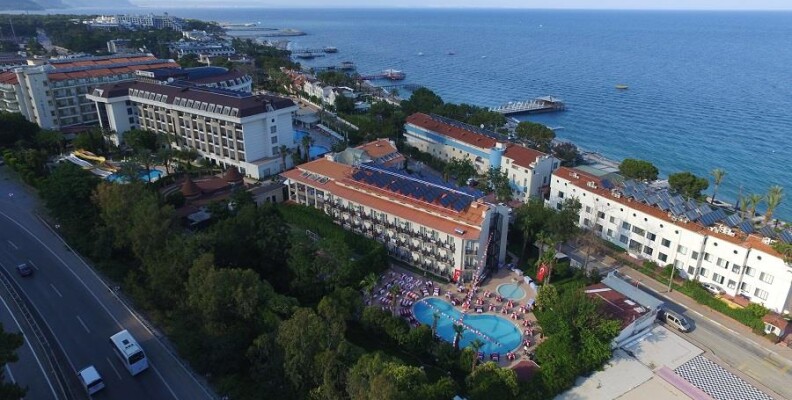 Отель еле тянет на 3 звезды!! Территория очень маленькая, отель расположен между 2-мя дорогами - дорогой идущей через весь Бельдиби и трассой Анталия-Кемер, которые проходят вдоль забора отеля. Соответственно в номерах, выходящих на трассу ночью бывает шумновато. Мебель в номерах старая (10 лет после реновации), но все более менее работает, в номерах убирают регулярно (по крайней мере у нас). На территории отеля есть небольшой бассейн 1,7м. глубиной (лужу 40 см. глубиной для детей бассейном не считаю), бар рядом с отелем, небольшая типа футбольная площадка с установленной на ней небольшой сценой для типа анимации.