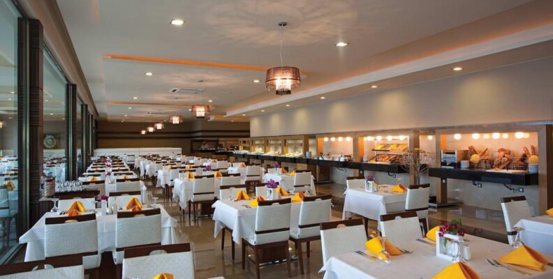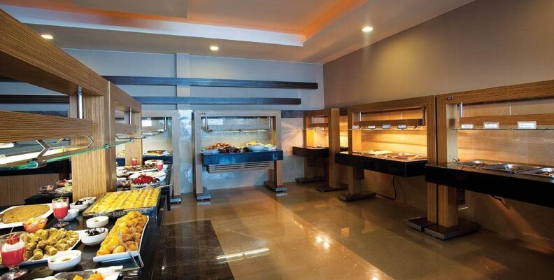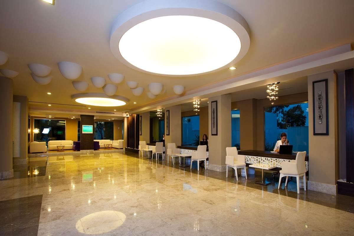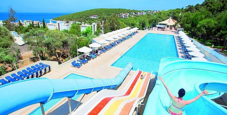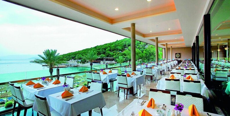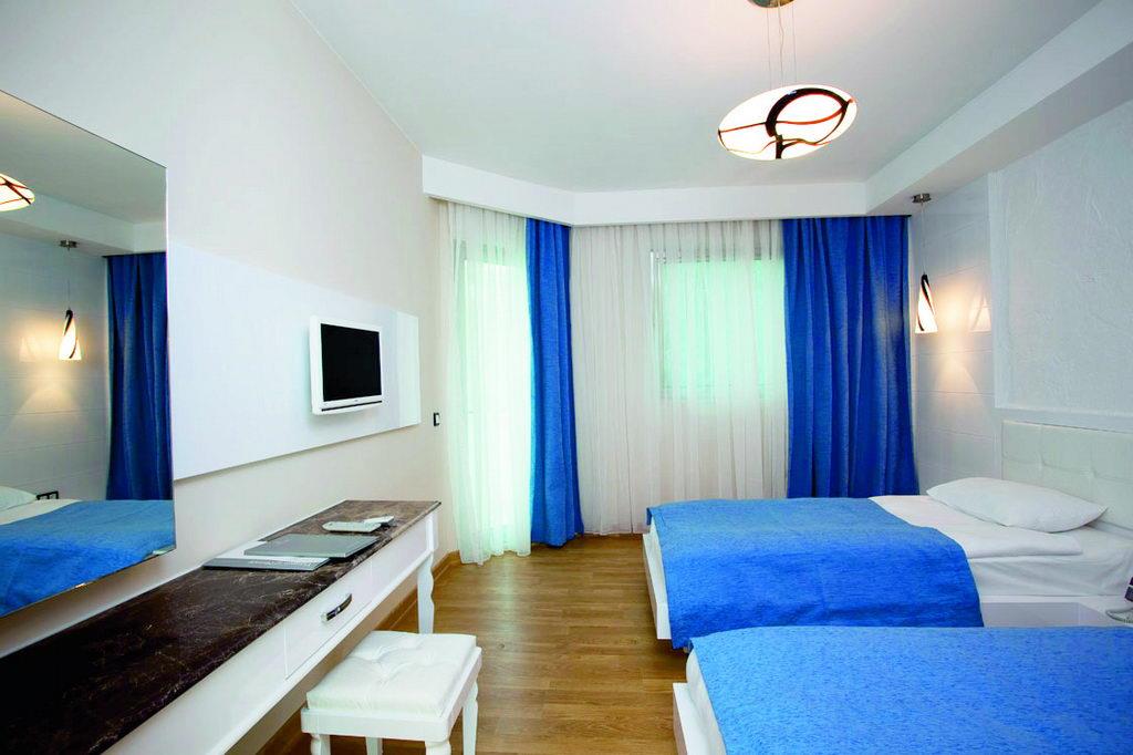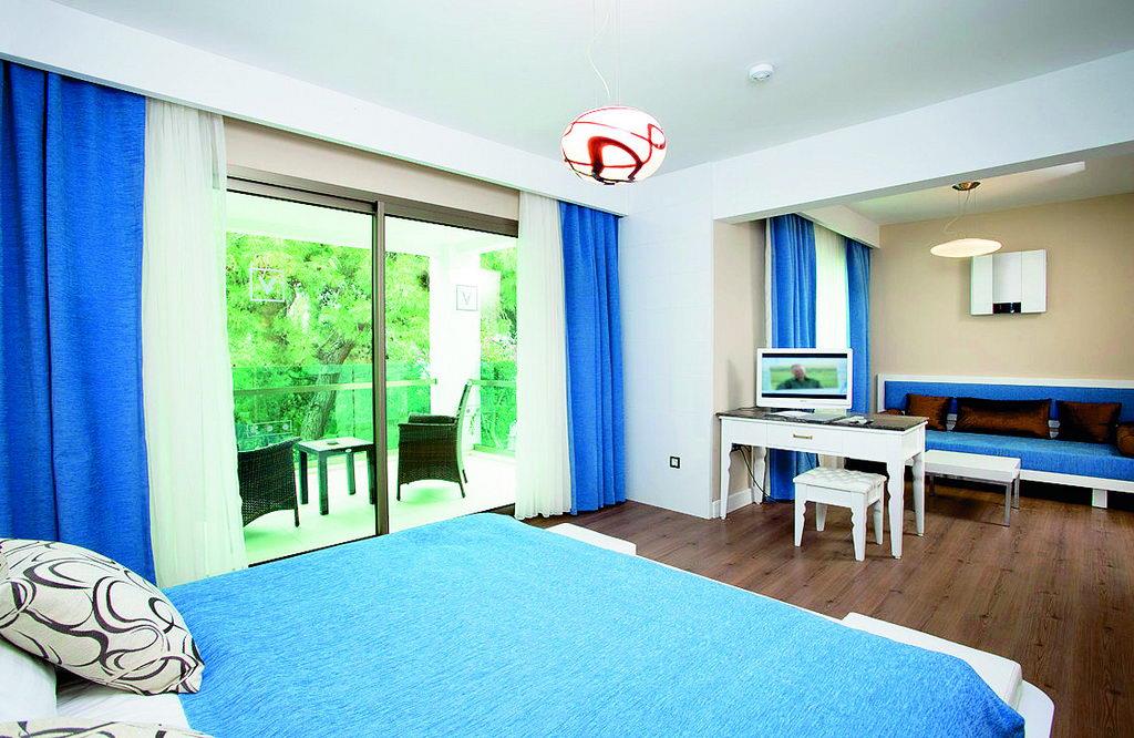 Достаточно разнообразное питание с 12:30 до 16 давали мороженное на пляже, в баре на рецепшен - почти весь день. Номера просторные, но мебель и ТВ допотопные. Персонал гипер внимательный и доброжелательный, еще подумать не успеешь - уже все исполнено. отель расположен на холме придется много ходить в гору, альтернатива - машинки, которые возят по территории, но их только две и чаще всего в нужный момент их не было на месте.теннисные ракетки лучше взять свои с собой из дома.Анимация на турецком языке, пару раз психанули-демонстративно ушли, ну хоть бы на английский переводили. Иногда переводили на английский. Пляж маленький, в тесноте, но не в обиде: плотно прижавшись к соседям места всем хватало. Бар на пляже хороший обслуживание хорошее, хорош и шашлык из баранины. Итальянский ресторан тоже хорош и вечером и днем в качестве бара у бассейна: пицца, ризотто, лазанья, салат с тунцом отличные. В основном ресторане много хороших сыров, турецкая пицца с сыром вкусная необыкновенно.Хороша рыба в основном ресторане.Море вне всяких похвал. Претензий к уборке номеров тоже не было. Напитки не плохого качества. Рекомендую другим и сама бы второй раз поехала, хотя не люблю ездить дважды в одно и то же место.