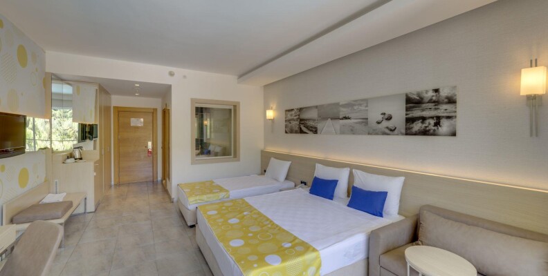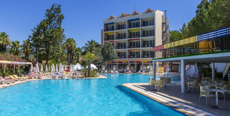 Отель больше для нетребовательной молодёжи. Анимации практически нету, дискотека только для детей, причём каждый день одно и тоже. В 23.00 от отеля отходит автобус на Барстрит, и в 3 часа утра забирают обратно в отель. На пляж тоже ходят 3 раза в день автобусы. Лучше ехать на пляж в Ичмелер (посёлок рядом с Мармарисом), там НАМНОГО лучше, и главное чище, чем на городских пляжах.