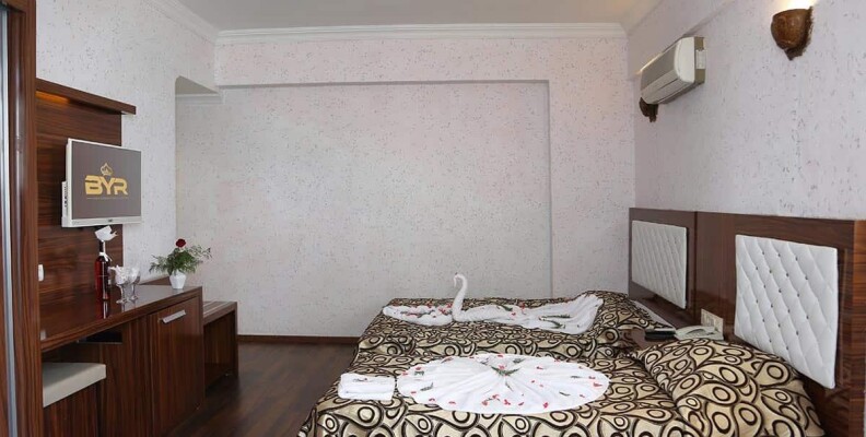 Отель прекрасно тянет на свои 3*+. Номер нам дали в главном корпусе (всего за 20$ вложенных в паспорт при регистрации) просторный, светлый, с холодильником, кондиционером (весь в пыли и плесени), балконом. Лежа на кровати через балконную дверь видно море, красота... А если в окно глянуть, стройка)) Если вовремя ложиться и вставать, то она не мешает. Ну а так как мы молодежь, полночи по клубам, а потом спали до обеда, то нам мешала шумом с восьми утра((( Постельное нам поменяли один раз за два дня до отъезда, полотенца грязные забирали и не возвращали, приходилось напоминать. Убирали в номерах каждый день, но не очень тщательно. Сломался фен, тут же заменили на новый. Питание отличное и разнообразное, рыба два раза в неделю, курица каждый день, много овощей, сладкого, из фруктов яблоки, апельсины, арбузы. Спиртного хватало, пиво хорошее, вино нормальное, виски тоже ничего. Обслуживающий персонал приветливый, особенно бармены и официанты. Анимация веселая, но за две недели приелась. Не понравилось что собирают по 5$ с человека за то что отвозят и привозят с клуба, впервые такое встречаю. Чтобы они не говорили, пускают во все клубы бесплатно, можно на маршрутке доехать до них, а потом на такси назад, когда сам пожелаешь, компанией из 4 человек не дорого. Пляж в 30м, подземный переход к нему. В начале сезона (а мы были в мае) чистый, и лежаков хватало. Хамам в отеле посещали, цена приемлемая, и делают хорошо. Все экскурсии брали у Ромы (Каппадокия, Грин-каньон на джипах, яхта). В целом отель неплох, но для семейного отдыха, молодежи советую выбрать что-то ближе к центру.
